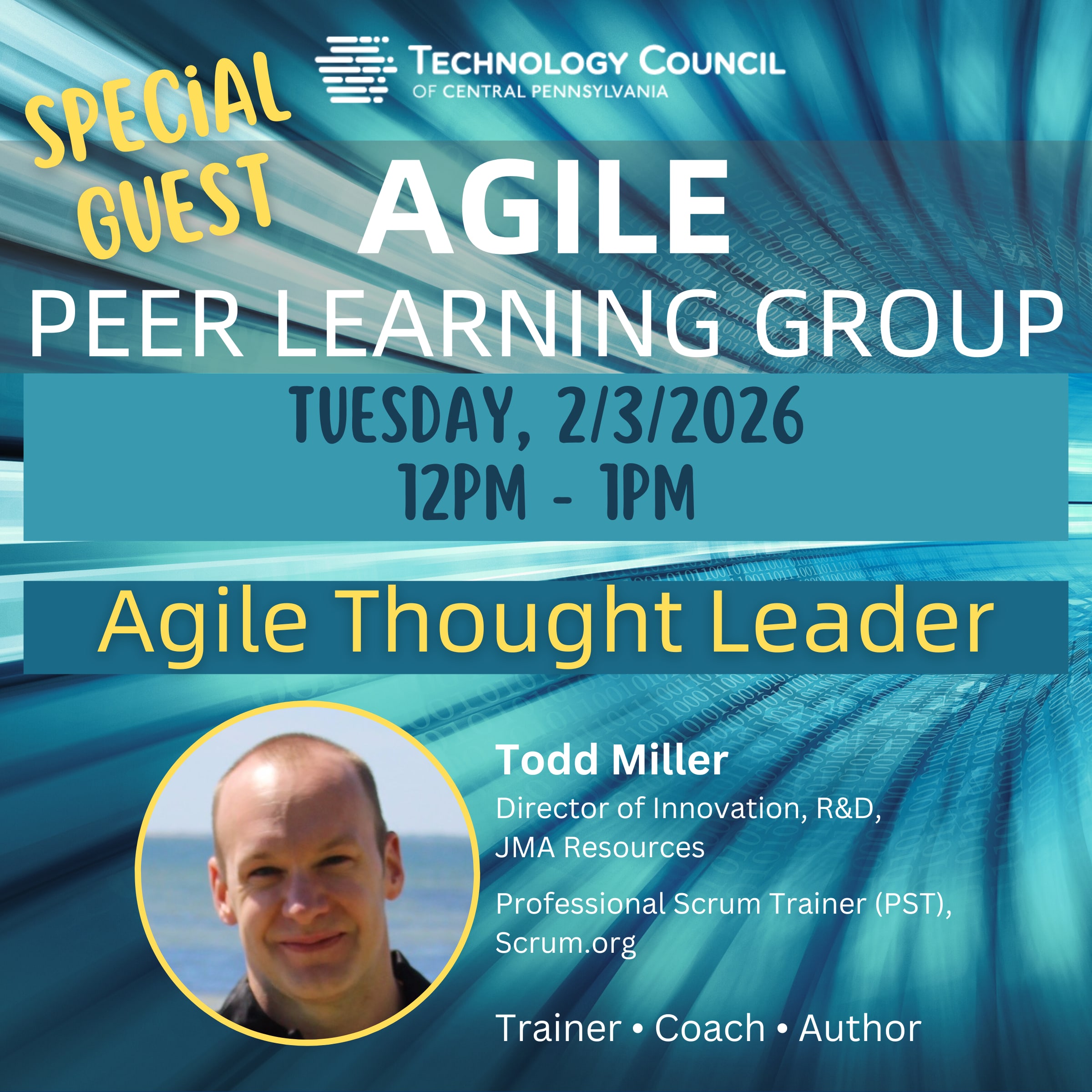 We’re thrilled to welcome Todd Miller—Director of Innovation, R&D at JMA Resources and a Professional Scrum Trainer (PST) with Scrum.org—as our special guest for this Agile Peer Learning Group session.