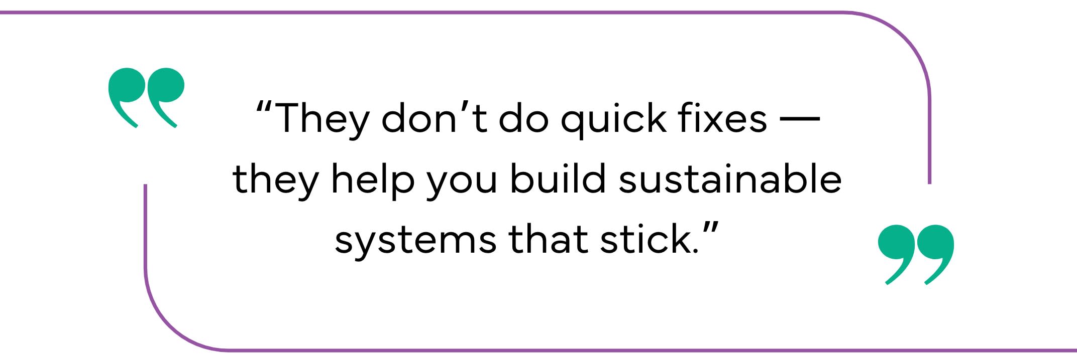 - Systems-Driven: Strategy embedded into your operations, not isolated.