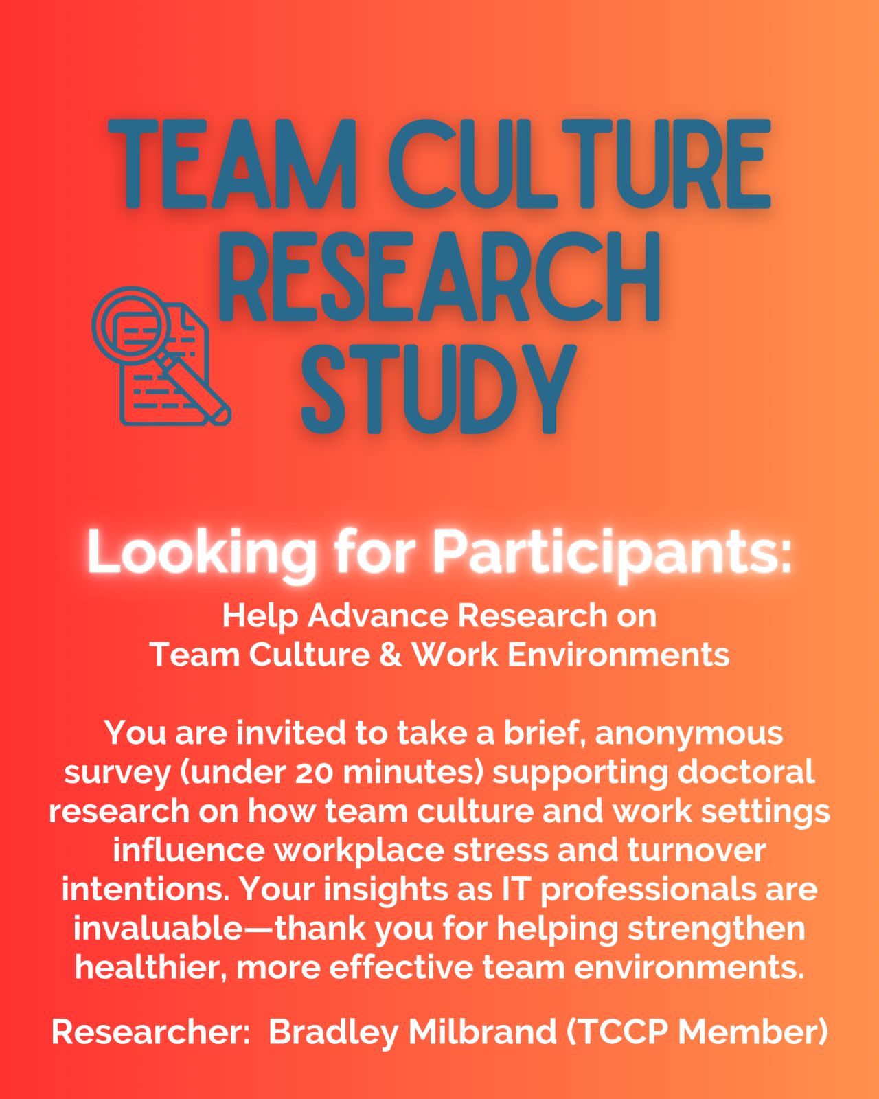 Fellow TCCP member Bradley Milbrand is conducting doctoral dissertation research and is asking for support from our tech community.