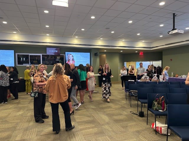 The highlight of the night was the fashion show, which showcased designs by Glenna Marino and Jessica Intrieri. Models Susan Lehr, SPC PMP CSM, Jessica Delo, Cheri Bruckner, Sarah Leahy, Jody Donnelly, and Melissa Hubbard brought the runway to life, showing that confidence, community, and collaboration never go out of style.