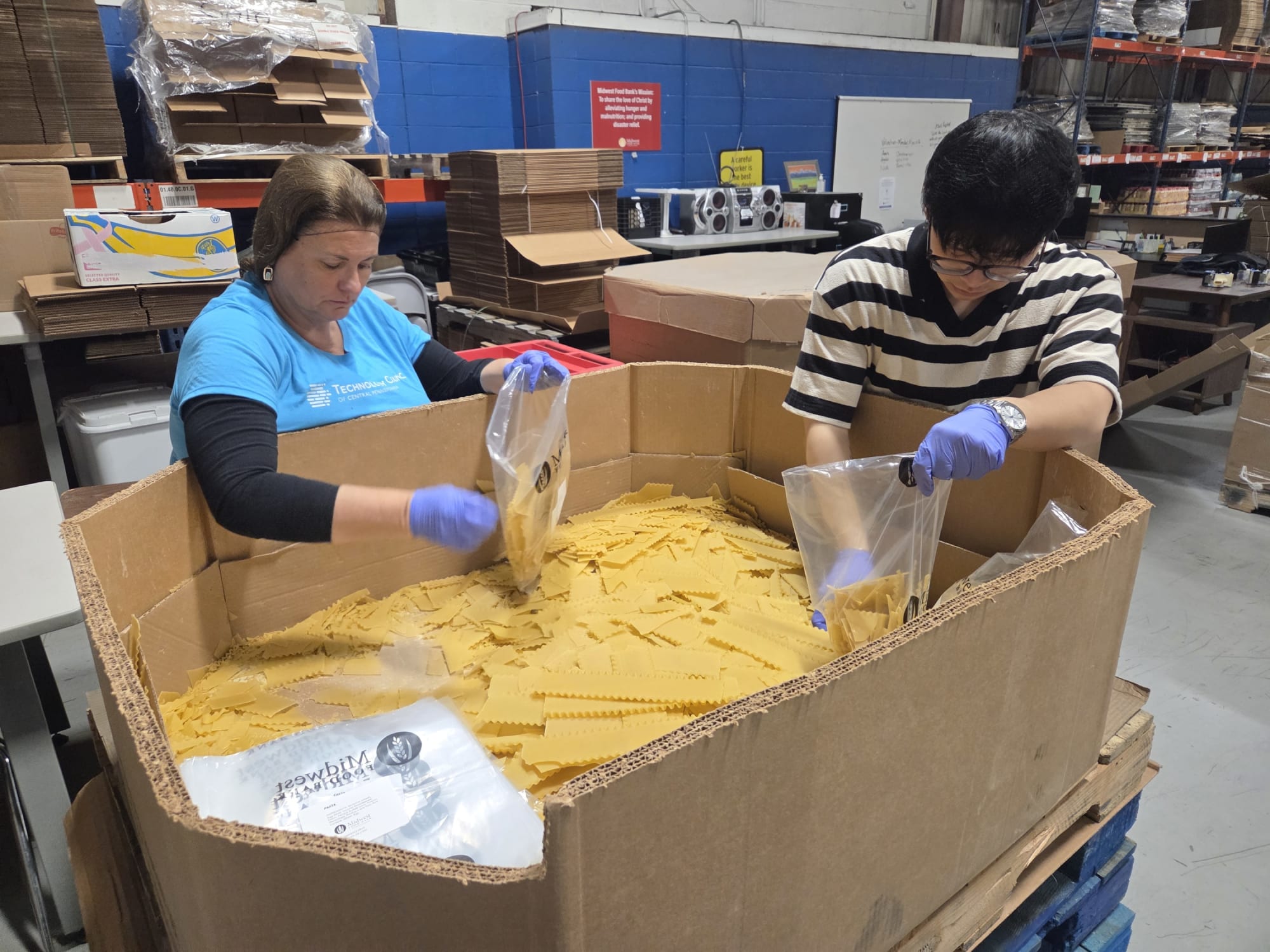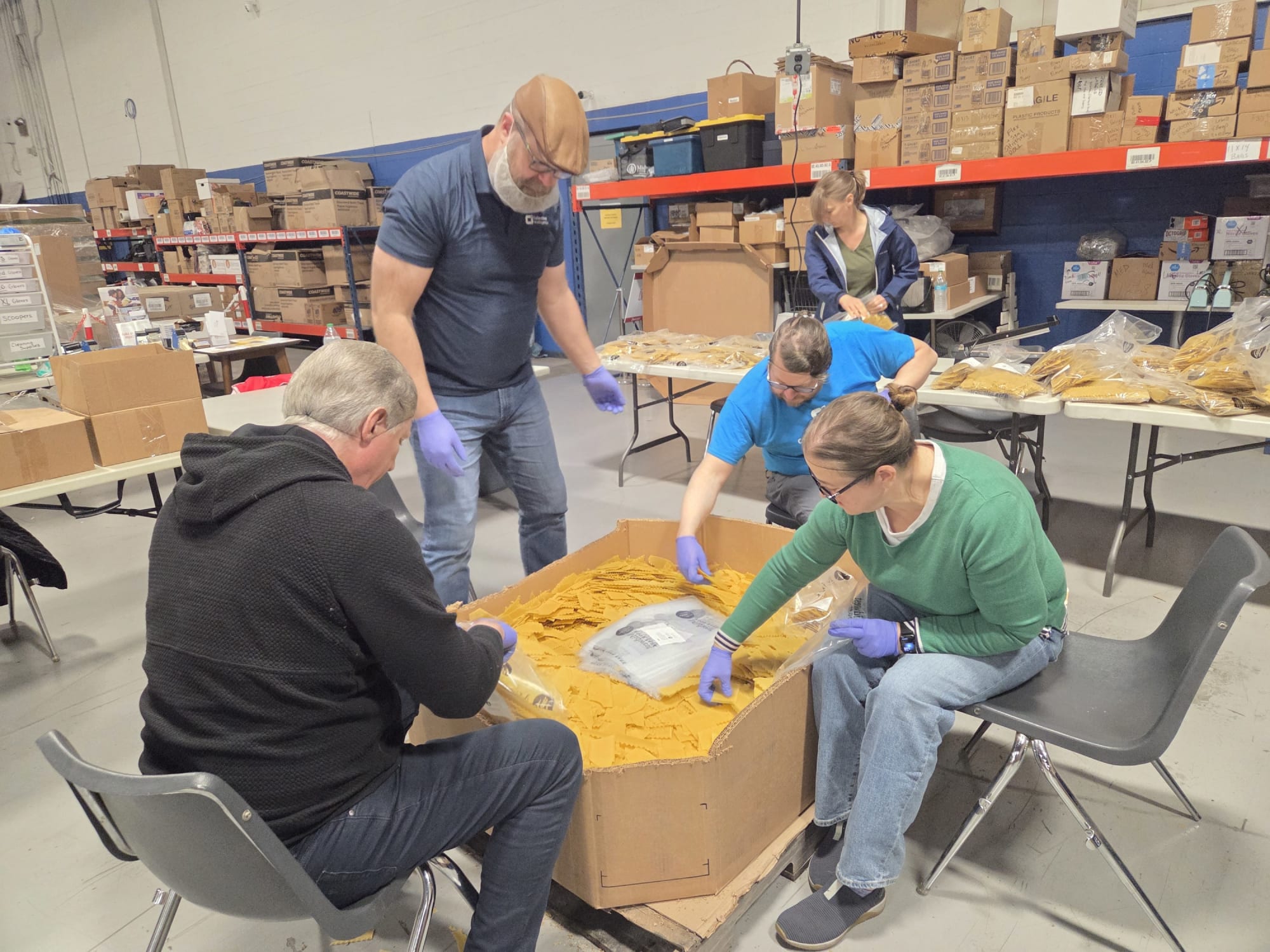 With a team of 8 volunteers from TCCP and Collective Intelligence, we rolled up our sleeves and got to work packaging 360 bags of lasagna noodles — all of which will be distributed to families in our community facing food insecurity.
