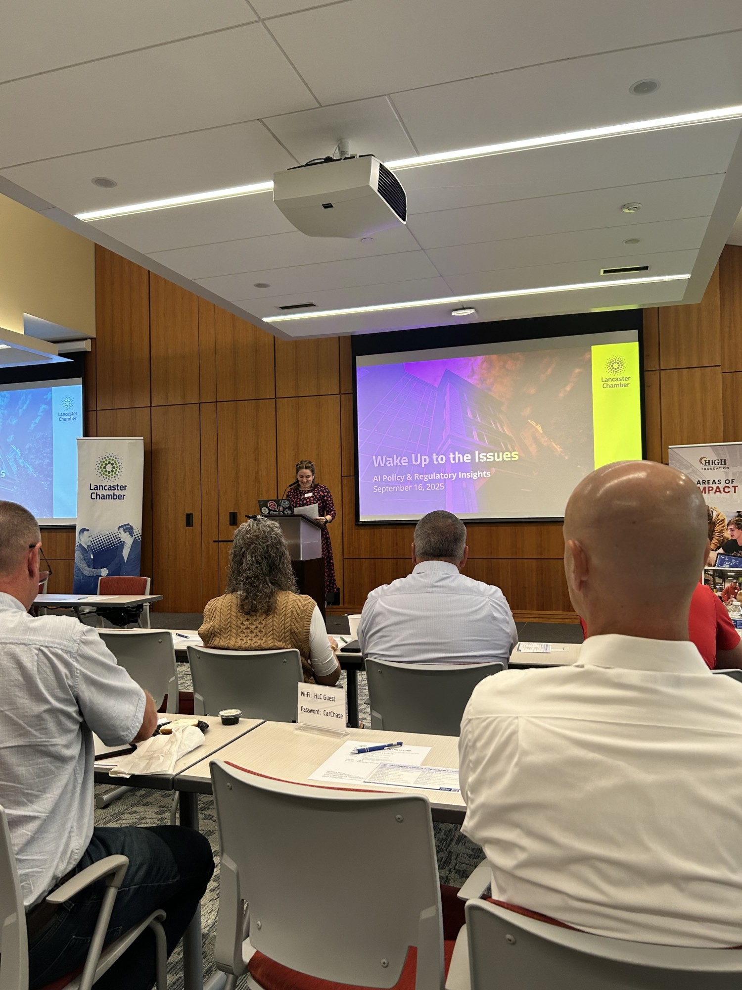 On September 16, 2025, Jazmin Slaughter, Community Engagement Specialist with the Technology Council of Central Pennsylvania (TCCP), attended Wake Up to the Issues: AI Policy & Regulatory Insights, hosted by the Lancaster Chamber.